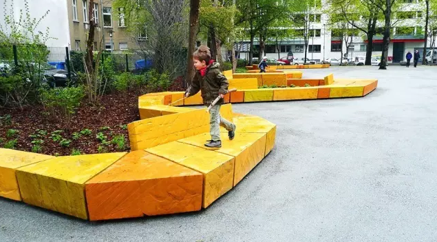 柏林KALA游樂場和綠色空間景觀設(shè)計項目位于一個公共城市廣場,旨在通過增強(qiáng)公民意識和自由意識促進(jìn)兒童活動。該項目的關(guān)鍵詞是:形式和空間簡單化。項目空間分為兩個不同的區(qū)域,分別適用于老人和孩子。Meeresinsel(海島),一個帶有自然游樂區(qū)域的游樂場,可激發(fā)孩子們的創(chuàng)造性;Erdeninsel(地島),一個城市裝置設(shè)計,五彩、有趣且智能。